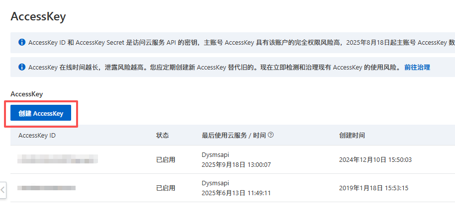 1)点击“创建AccessKey”按钮;