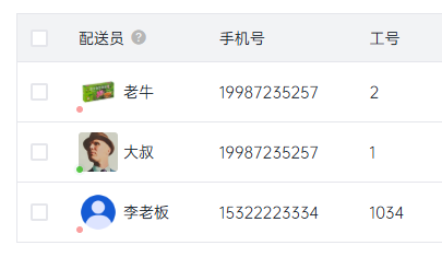 v3.1新增配送员长链接状态,配送员头像左下角红色为当前配送员长链接下线状态,表示该配送员使用的配送端处于离线状态,左下角为绿色状态时表示配送员使用的配送端处于在线状态,可正常接收订单推送语音和订单任务。